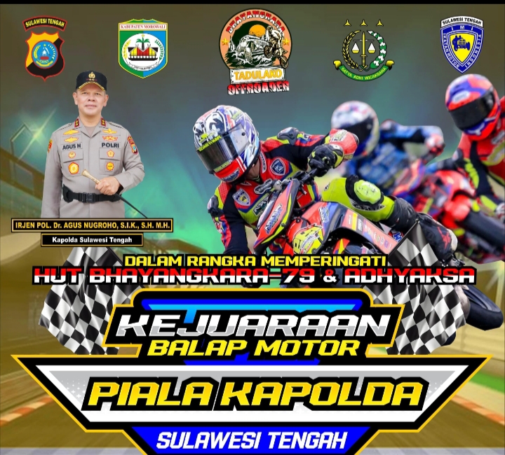 Morowali, Tinombala.Com// Kejuaraan Terbuka Balap Motor Piala Kapolda Sulawesi Tengah Seri 3 digelar di Sirkuit Alun-Alun Rumah Jabatan Bupati Morowali pada Jumat, 11 Juli 2025. Kejuaraan ini resmi dibuka oleh Kapolda Sulteng, Irjen Pol. Dr. Agus Nugroho, S.I.K., S.H., M.H., pada Jumat (11/7/2025) pukul 14.00 WITA