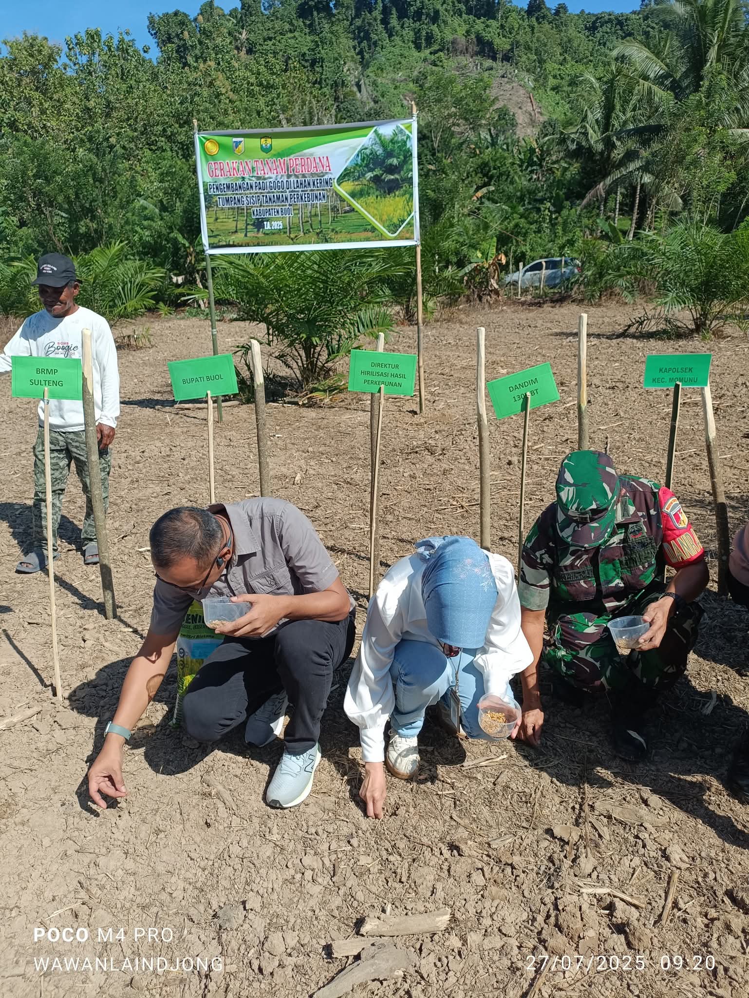 Buol, Tinombala.Com// Dinas pertanian kabupaten buol, Sulawesi Tengah melaksanakan kegiatan Gerakan Tanam Perdana Padi Gogo Tumpang Sisip Lahan Perkebunan di Desa Momunu, di Kecamatan Momunu, Minggu (27/7). Kegiatan ini menjadi bagian dari program nasional dalam mendukung ketahanan pangan serta transformasi sektor pertanian di daerah.