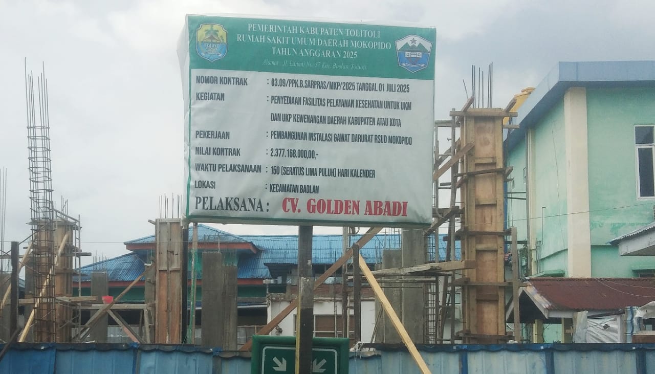 Pantauan Tinombala.Com Jum’at, 19 September 2025. Pembangunan gedung baru yang sedang dikerjakan oleh CV Golden Abadi sebagai mitra kerja pengelola RS Mokopido, terus berjalan dengan lancar.