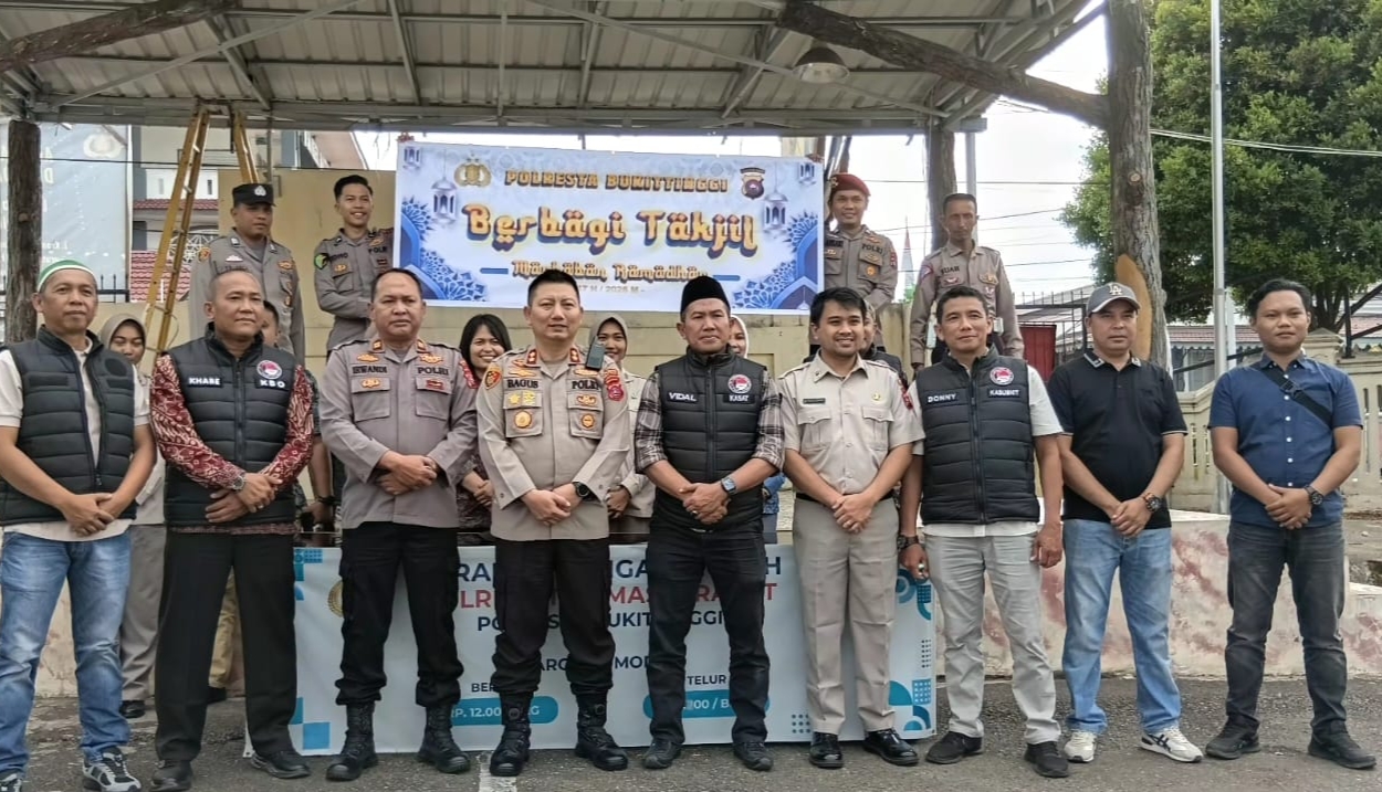 Pembagian takjil dipimpin langsung oleh Wakapolresta Bukittinggi AKBP Pol Bagus bersama personel dari tiga satuan fungsi yang terlibat dalam kegiatan sosial tersebut.