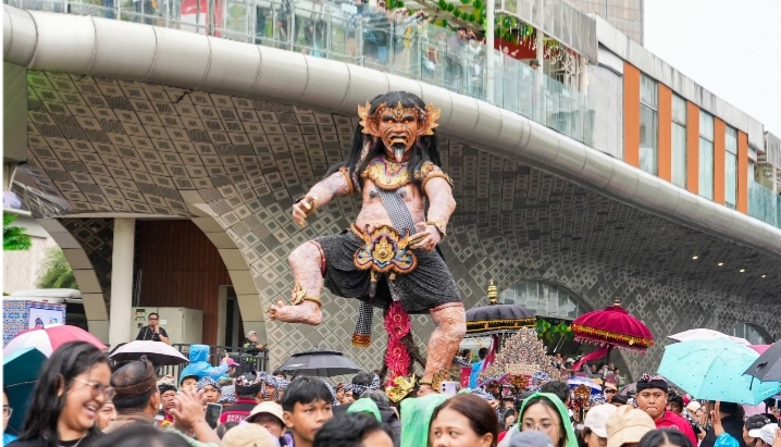 Di tengah suasana car free day, iring-iringan ogoh-ogoh berukuran besar bergerak perlahan di sepanjang jalan protokol Ibu Kota. Patung raksasa yang menggambarkan berbagai karakter raksasa dan makhluk mitologis itu diusung puluhan peserta, diiringi musik tradisional dan atraksi budaya.